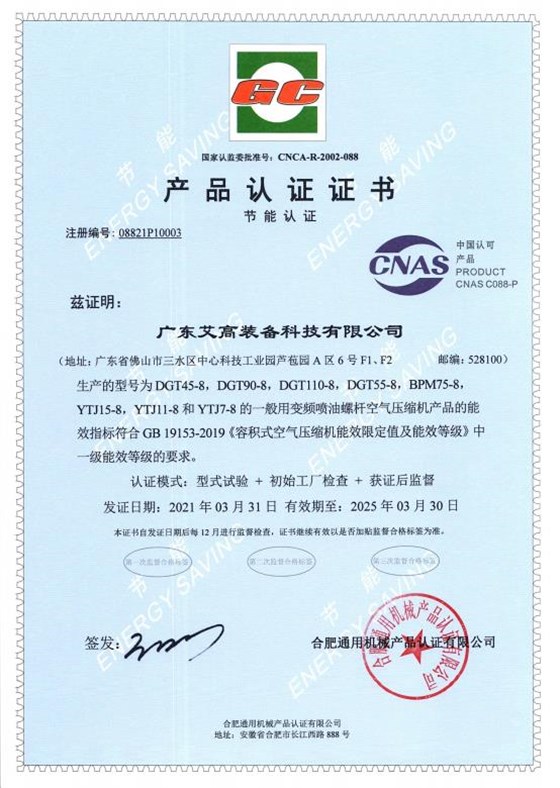 GC节能产品认证证书